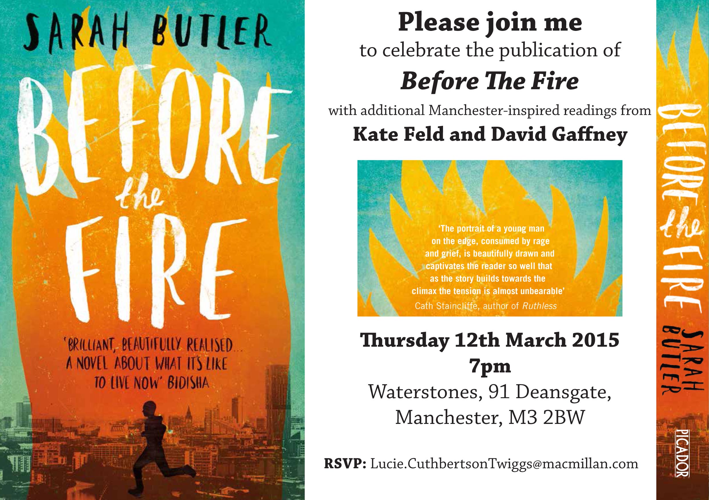 BEFORE THE FIRE launch – Thursday 12 March, Manchester Posted on February 24, 2015 by Sarah Butler Reply